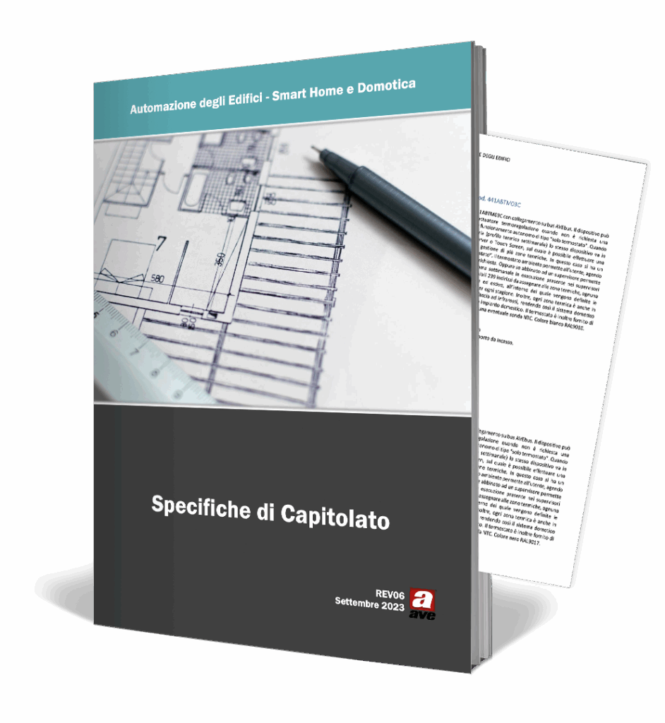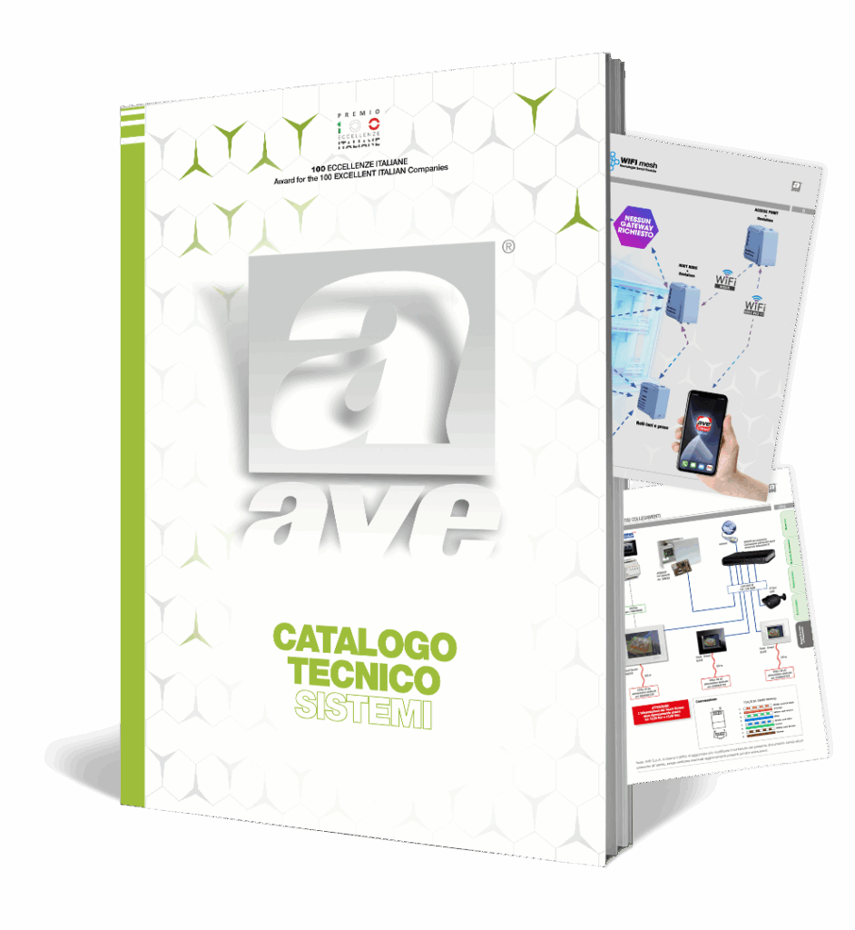 AVE S.p.A. si riserva inoltre il diritto di apportare cambiamenti e/o miglioramenti, senza preavviso e in qualsiasi momento a prodotti e/o programmi descritti in questo catalogo. Il materiale Ave va installato da persona qualificata e l’impianto va collaudato da persona esperta, in conformità alla normativa vigente.