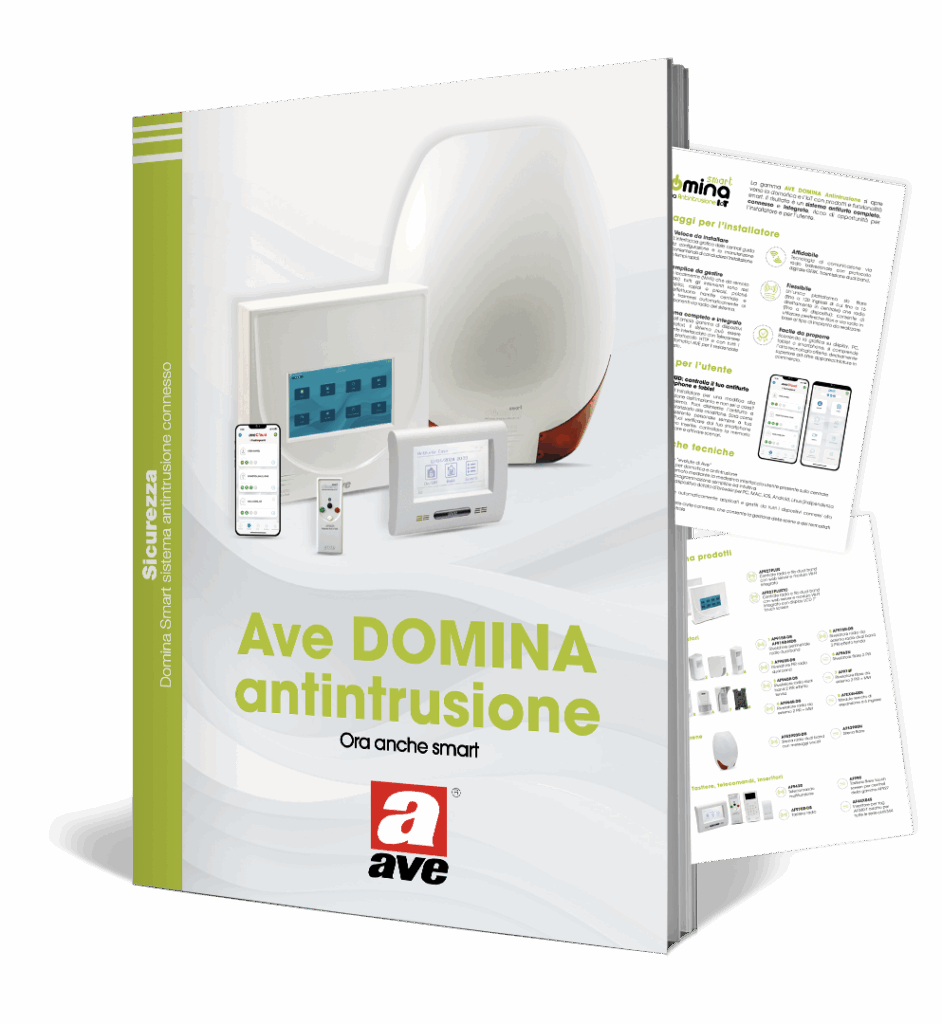 La gamma AVE DOMINA Antintrusione si apre verso la domotica e l’IoT con prodotti e funzionalità smart. Il risultato è un sistema antifurto completo, connesso ed integrato, ricco di opportunità per l’installatore e per l’utente. Un’unica piattaforma, che consente di utilizzare periferiche filari e via radio in base al tipo di impianto da realizzare.