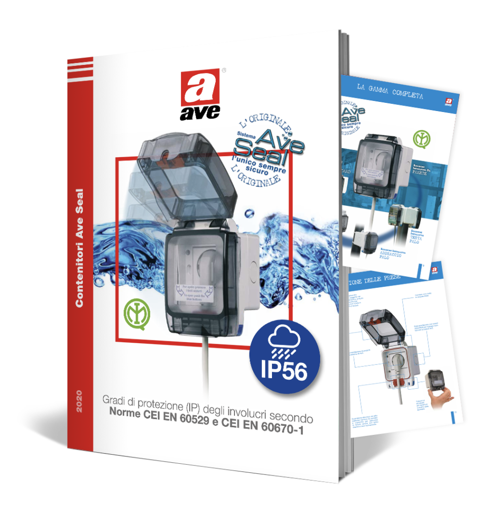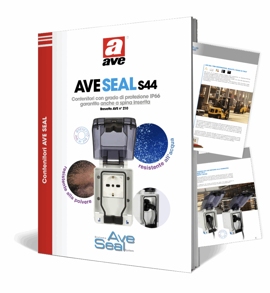 Prima in assoluto nel mercato italiano, AVE offre una gamma completa di contenitori stagni che garantiscono protezione da acqua e polvere (si arriva al grado IP66) anche con spina inserita e sportello chiuso. Brevetto AVE già vincitore di numerosi premi di settore, i contenitori AVE SEAL consentono oggi l’installazione dei frutti di tutte le serie da incasso del Sistema 44 permettendo di andare incontro a diverse esigenze tramite molteplici soluzioni installative.