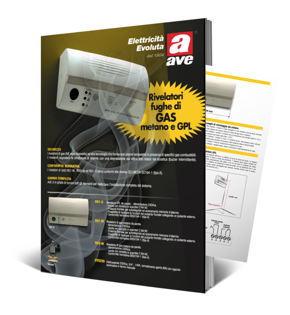 I rivelatori di gas AVE sono dispositivi ad alta tecnologia che forniscono allarmi tempestivi in presenza di specifici gas combustibili. I rivelatori segnalano la condizione di allarme con una segnalazione sia ottica (led rosso) sia acustica (buzzer intermittente).