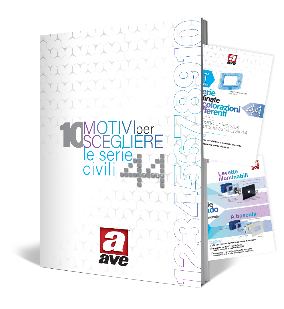 Nel magazine “10 Motivi per scegliere le serie civili AVE S44” sono raccolte tutte le peculiarità che rendono uniche le serie civili S44, un sistema in grado di garantire la massima flessibilità impiantistica, una totale scalabilità dei costi, l’esclusività di prodotti made in Italy e reperibili solo presso la filiera professionale.