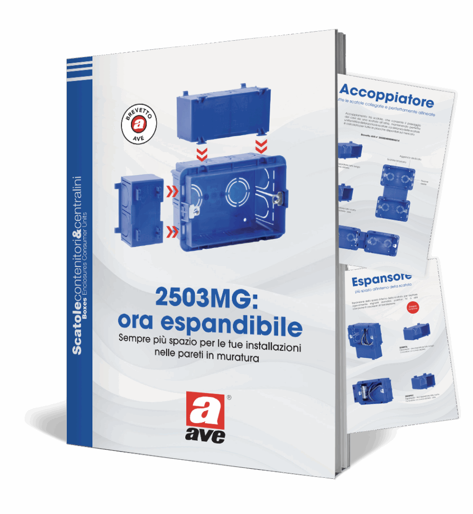 AVE offre una linea completa di scatole porta frutto per serie civili, scatole di derivazione multifunzione, accessori e soluzioni in grado di soddisfare ogni esigenza impiantistica per la realizzazione di impianti elettrici e domotici su pareti in muratura, cartongesso e tramezze leggere. Ogni prodotto è concepito per assecondare il lavoro professionale, con dettagli tecnici studiati per offrire il meglio in termini di qualità, affidabilità e velocità d’installazione.