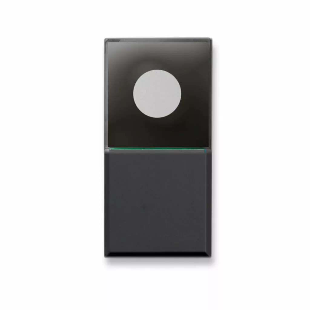 Pulsante con spia di segnalazione illuminabile, Serie Tekla colore grigio scuro -1P NA 10A 250V - diffusore trasparente - fornito con etichette di personalizzazione - 1 modulo