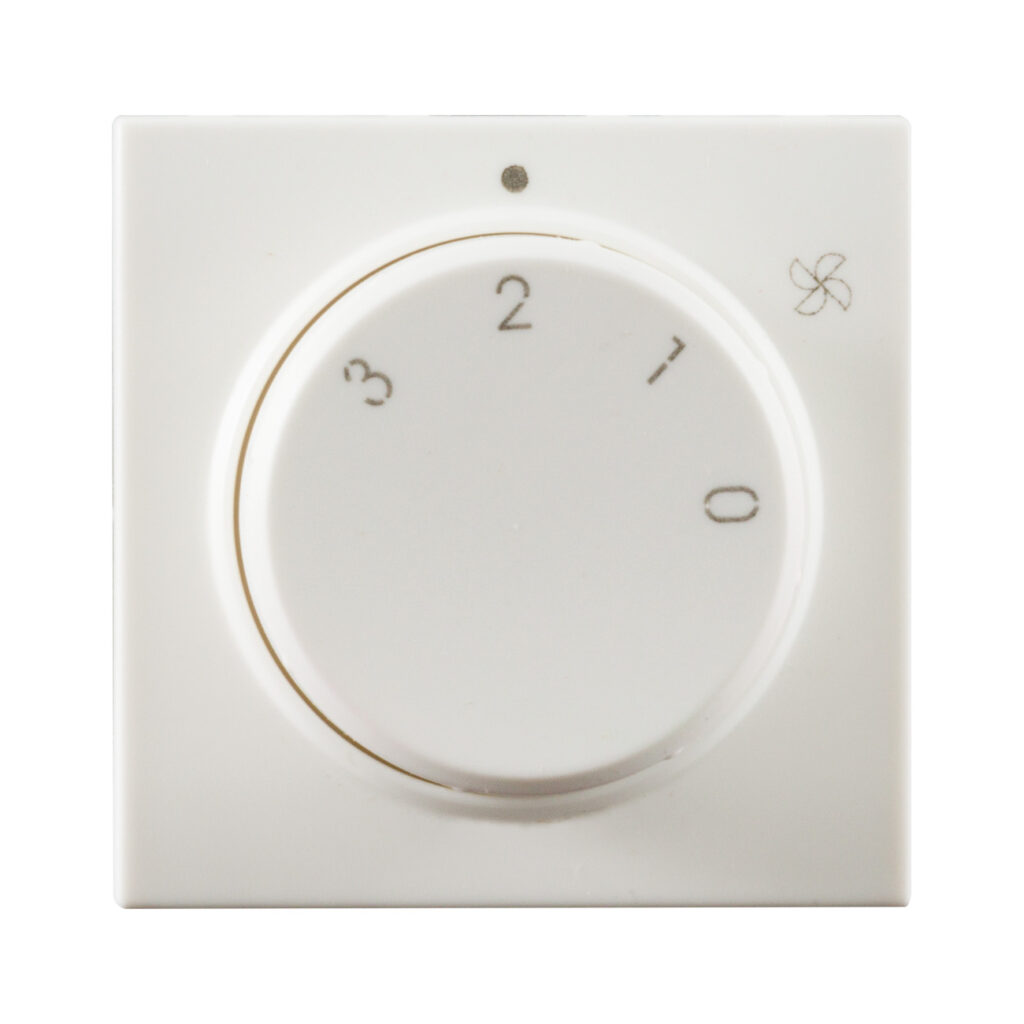 Commutatore rotativo, Serie Whitek colore bianco finitura opaca, 1P 3A 250V~ a 4 posizioni per variazione velocità fan-coil (ventil-convettori) - 2 moduli