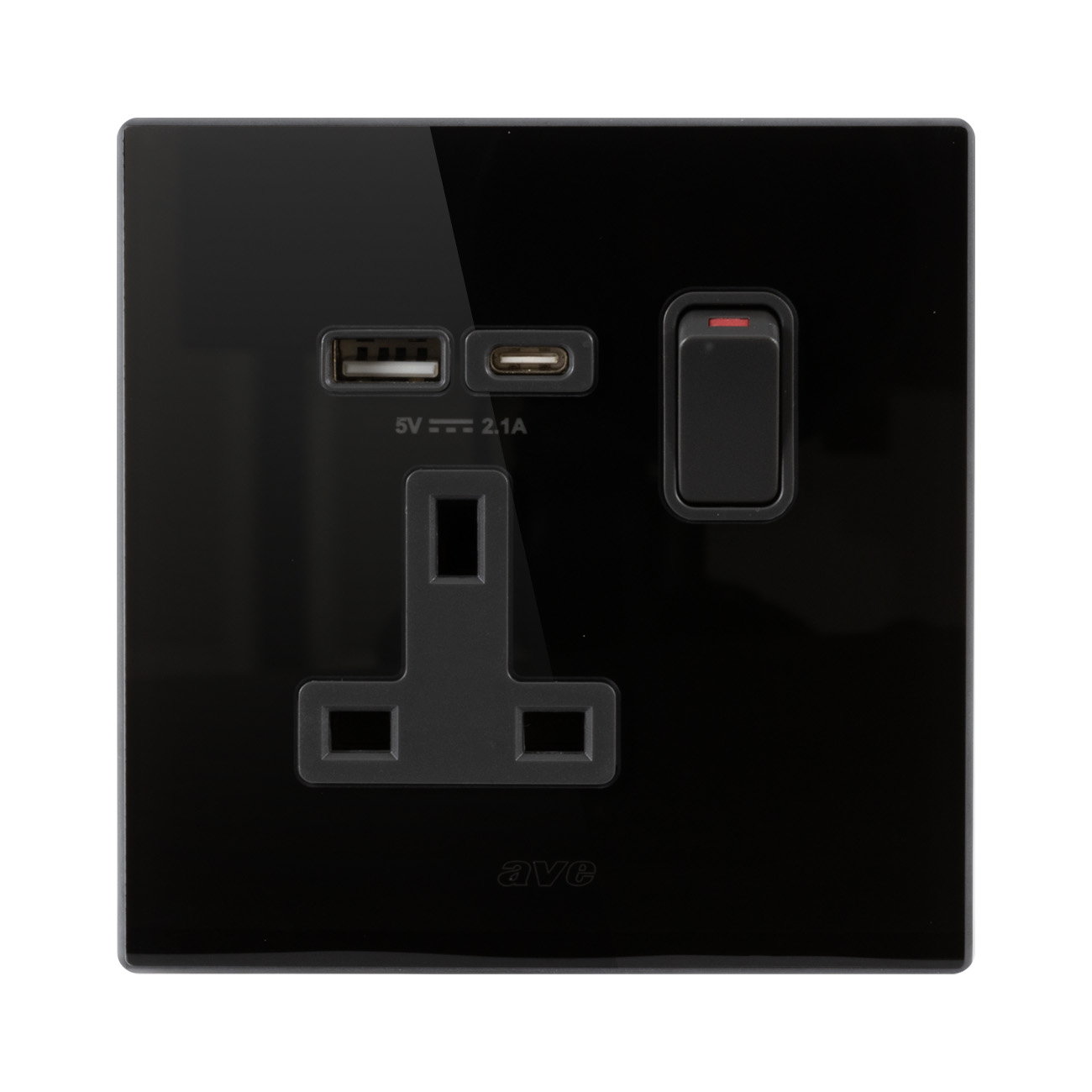 Riferimento Metel: PRESA 13A+INTERR.2P VT NERO USB AC