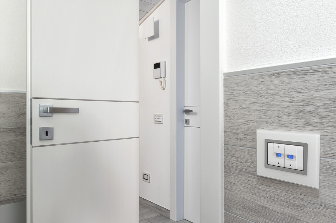 In this villa of Mozzacane, in the Italian province of Verona, Ave Touch technology enters to give a new contact with the interior spaces. The light points become technological furnishing elements thanks to the simple and ultra-thin design of the AVE Vera Touch front plates in white glass. Declined in a multi-touch variant, with up to six customizable controls, these solutions allow you to turn on the light, adjust the light intensity of the dimmered elements or manage the integrated home automations by simply touching the surface of these refined glass surfaces.